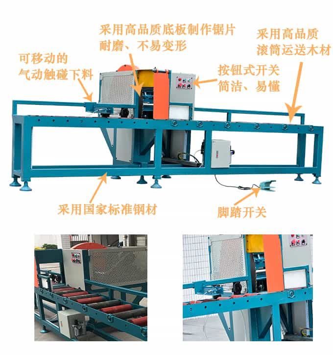 半自動截斷鋸是一種用于截斷圓木的專用機械,可取代傳統(tǒng)的斷木設備。本機是左右鋸設計,只需一名普通工人便可輕松操控,穩(wěn)定性高,加工表面平整光潔,截斷范圍可在100mm-30mm直徑木材。進料速度可根據(jù)實際所需隨意調(diào)節(jié),效率高,是傳統(tǒng)截斷機的2-5倍。鋸片配進口合金鋸片,使用壽命長.適用于原生木材,板材板方的切斷加工.本設備是采用腳踏開關的半自動截斷鋸,具有操作簡單,安全,效率快,切斷長度在100mm-1200mm范圍隨意設定,省時省工,大大減輕操作者勞動強度等優(yōu)點.
