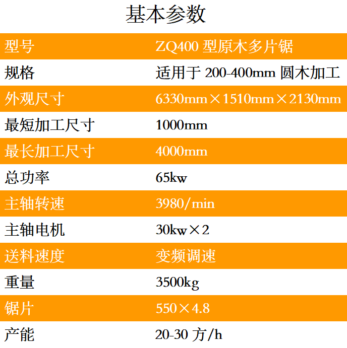 ZQ400型原木多片鋸是一種用于原木的開破以及分片的高性能專用機械