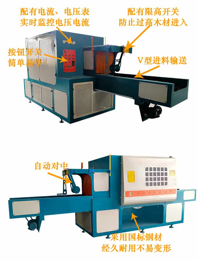 送 料:采用優(yōu)質(zhì)鏈條輸送,機上配有的變頻智能調(diào)速器,可以對大小木料的進料速度實行自由調(diào)速。原木可以實現(xiàn)自動分中,機上還配有限位開關(guān),防止超去規(guī)格木料進入,防止卡木避免對機器造成損壞。