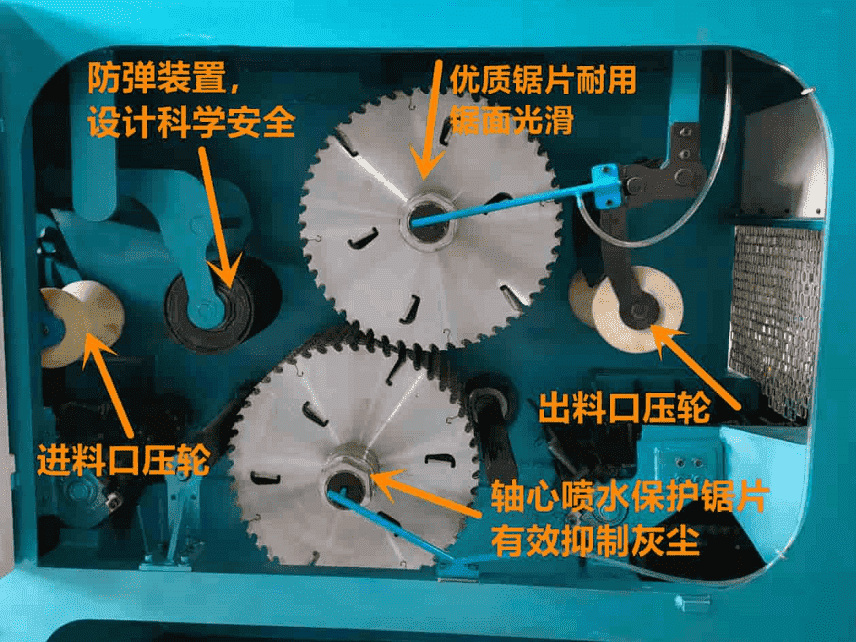 降溫系統(tǒng):采用軸芯噴水技術(shù),防塵環(huán)保,保護(hù)鋸片,能確保鋸片持續(xù)工作,延長(zhǎng)鋸片壽命。