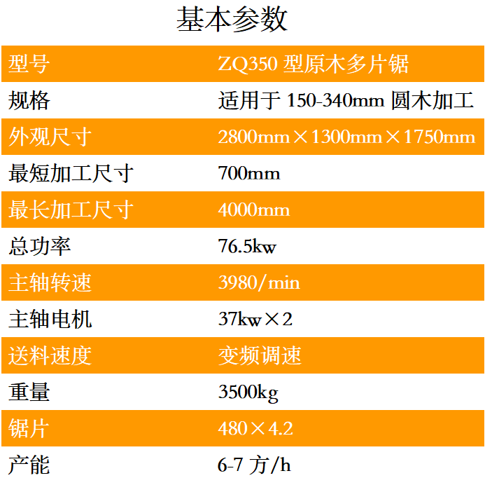 ZQ350型原木多片鋸是一種用于原木的開破以及分片的高性能專用機械,可根據客戶要求訂做各種規格的木板,提高木材的最大利用率