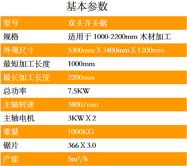 雙頭齊頭鋸機身采用國標鋼材、結(jié)構(gòu)科學、操作簡單、鋸面光滑、誤差小、效率高、故障率低、速度可調(diào),最短1米,最長2.2米,中間尺寸可隨意調(diào)節(jié)