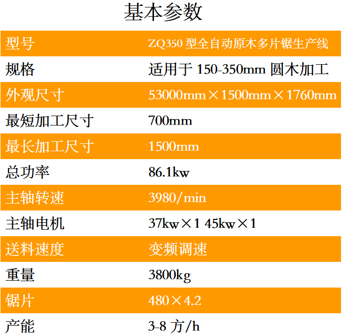 ZQ350型全自動(dòng)原木多片鋸生產(chǎn)線是一種用于原木的開破以及分片的高性能專用機(jī)械