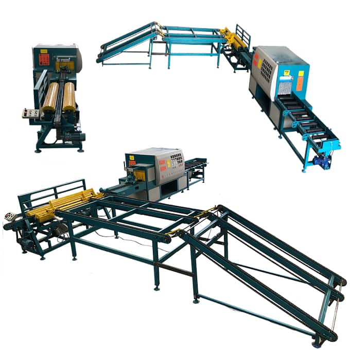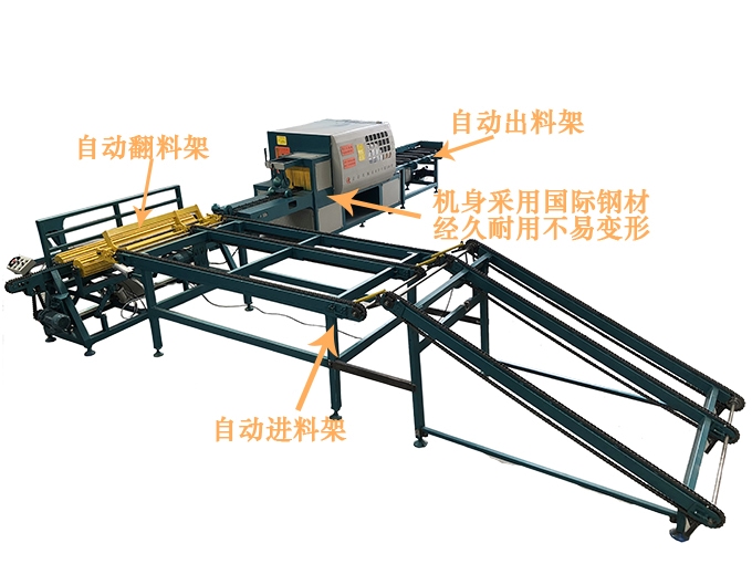 料:采用四排尖齒鏈條輸送,機上配有變頻智能調(diào)速器,可以對大小木料的進料速度實行自由調(diào)速。原木可以實現(xiàn)自動分中,機上還配有限位開關(guān),防止超去規(guī)格木料進入,防止卡木避免對機器造成損壞。